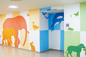 シックハウス対策としてF☆☆☆☆認定を取得済み。病院をデザインで楽しいイメージアップ。